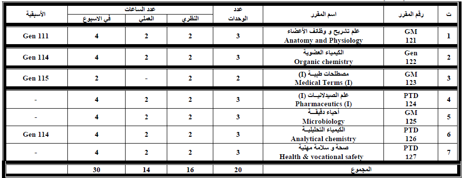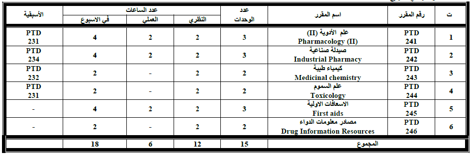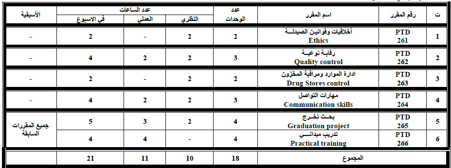 تتكون الخطة الدراسية اللازمة للحصول علي درجة الدبلوم العالي في تخصص الصيدلة باجتياز عددا من الوحدات المعتمدة وهي :(107) وحدة.